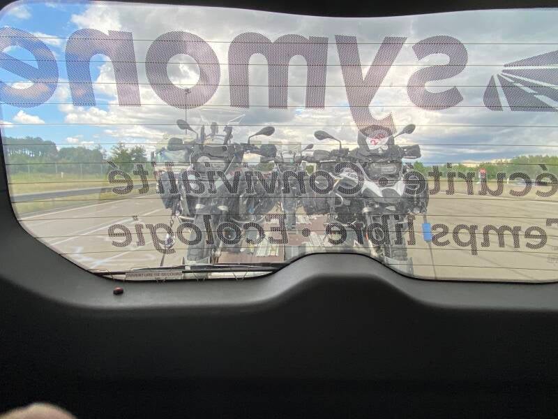 Arrivée sur Orléans, on charge les motos de Pascal et Denis.