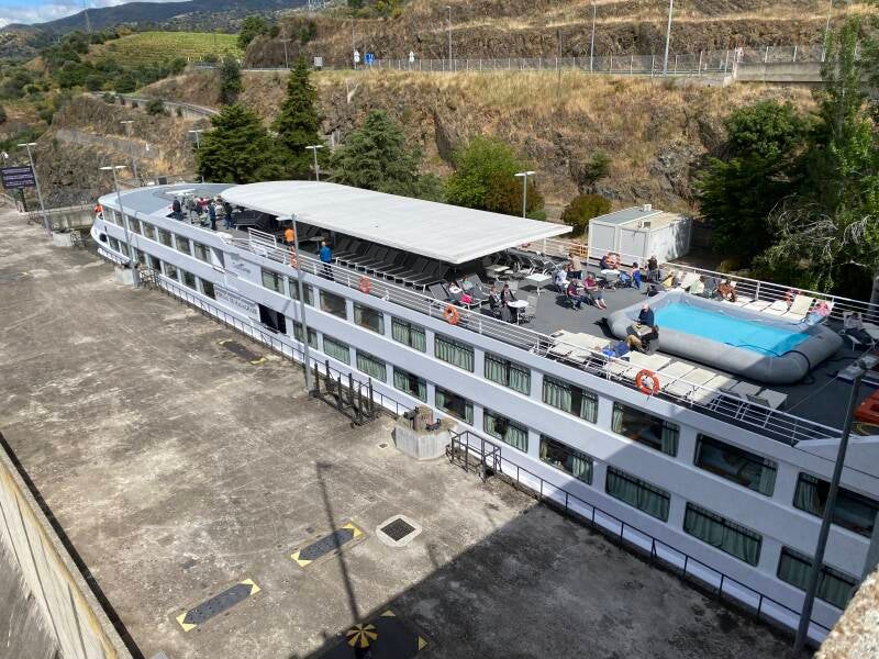 Un bateau de croisière se présente, du coup on fait nos touristes