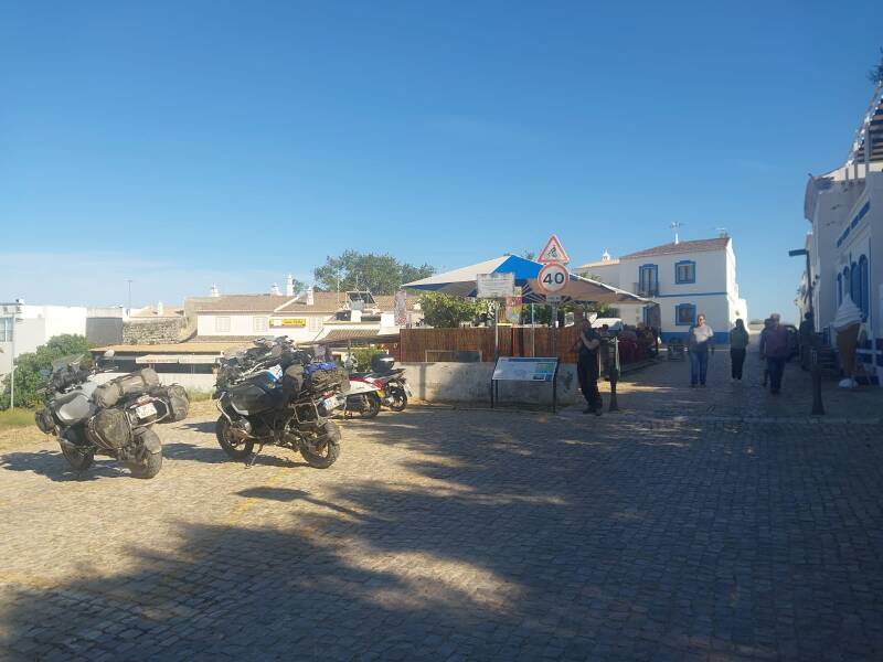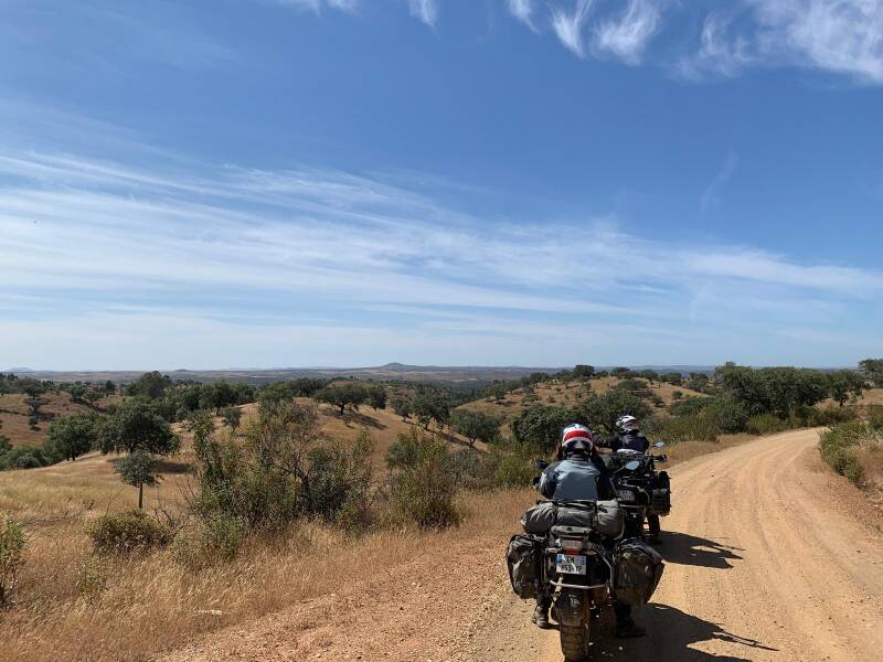 Nous commençons, comme chaque début de journée, par alimenter nos motos. Nous prenons ensuite la route et très vite la piste pour aller voir la tour Atalaia Magra.