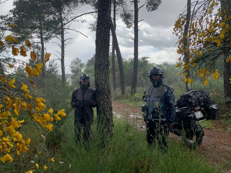 Une rincée de pluie, par laquelle on s'est fait prendre et où on sera trempés sauf Denis qui est en Goretex
