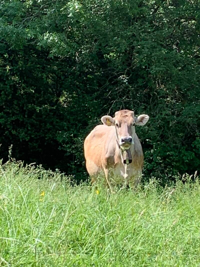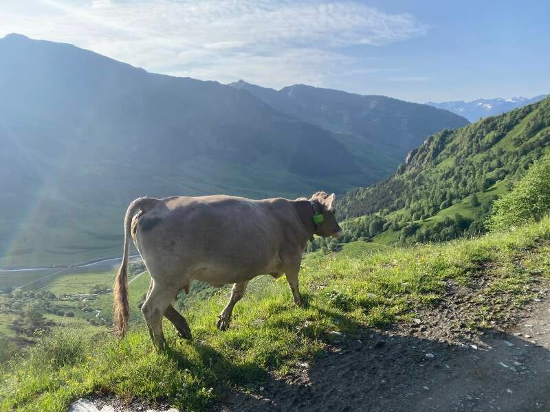 Nous commençons la journée par une très belle piste sur laquelle nous doublerons quelques vaches